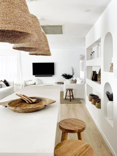 There are certain spaces in our homes or furniture pieces that are predominately functional, but with a few tricks can be beautifully styled as well. The desk in a home office is a purely practical space, but try adding some gorgeous linen paper storage boxes, matching stationery, a bunch of flowers and some inspiring artwork to elevate the space. The kitchen bench is often thought of as a working zone and can be forgotten when decorating our homes. We love creating styled vignettes in the corners of our kitchen bench or on the island to flow with the rest of the home. This could be as simple as a wooden chopping board with some beautiful salt and pepper grinders leant against the kitchen splashback or an overflowing fruit bowl with a bunch of faux flowers or potted herbs on the island bench.